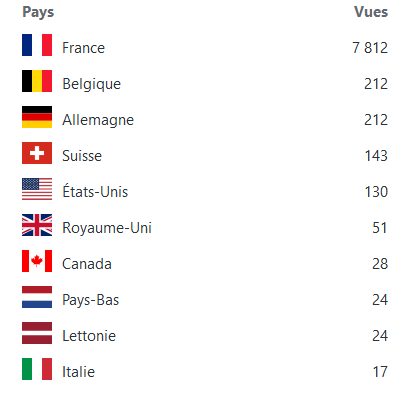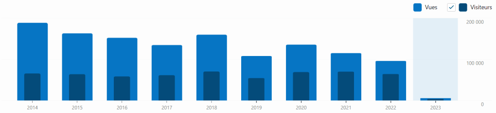 En 2023, 105.000 vues et 76000 visiteurs soit 200 visiteurs chaque jour dont la plupart sont des fidèles que je remercie ici.