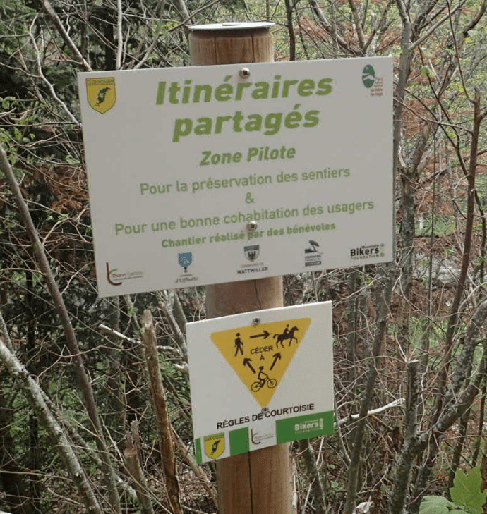 Je n’oublie pas par ailleurs le contentieux entre le monde du vélo et celui du Club Vosgien puisqu’à plusieurs reprises les marcheurs se sont distingués par plusieurs actions anti-VTT. Installation de chicanes, pose de rochers en bas de descentes, pose de barbelés, pose de panneaux d’interdiction sans base légale.